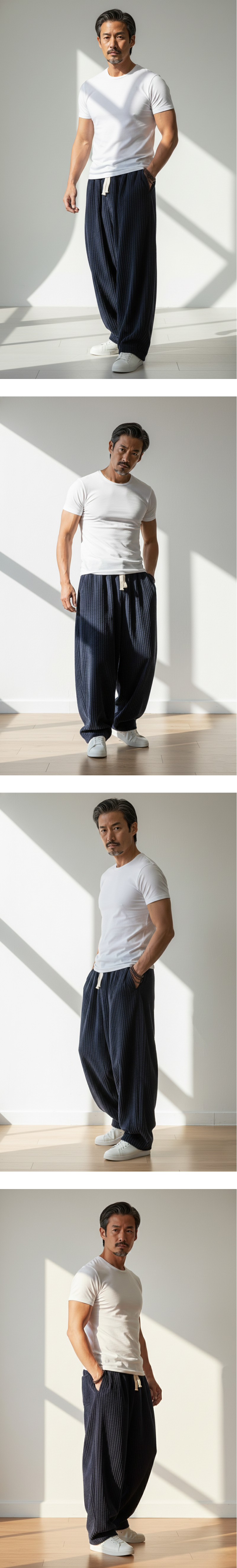 這款【織紋垂墜寬袴】,承襲了東方服飾的寬鬆哲學,